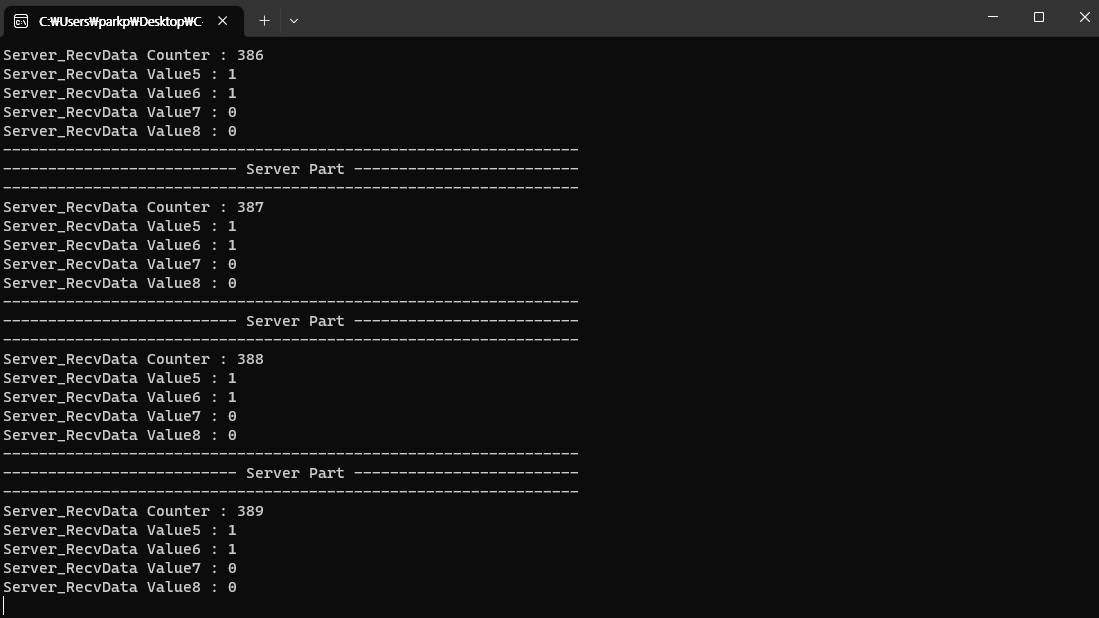 printf("Server_RecvData Counter : %d\n", ServerRequest.Counter);