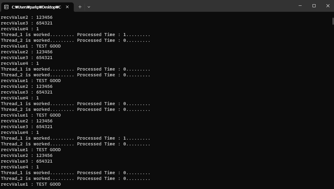 printf("Client_RecvData Value1 : %s\n", clientRecv.Value1);